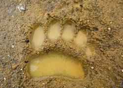 Кстати, медвежий след очень похож на след человека. Но гораздо более широкий. Он скорее квадратичен — лишь в длину чуть более вытянут и пальцы расположены ровным веером, да и когти выдают! Здесь же резко выделялся большой палец — это было явно другое существо.