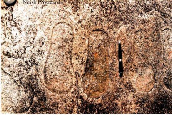 Приядарши сказал, что отпечатки найдены на граните, то есть, по его мнению, они с большей вероятностью могли быть вырезаны, чем отпечатаны на такой твёрдой породе. «Их могли вручную сделать местные жители – в память о необычных гостях».