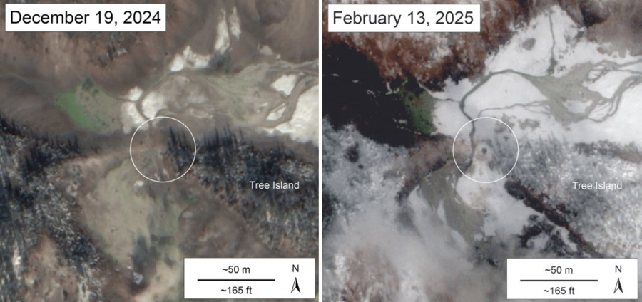Спутниковые снимки показали, что в октябре–декабре 2024 года этого бассейна не существовало. К 19 декабря появилась небольшая впадина, которая к 6 января 2025 года превратилась в полость, а к 13 февраля — в полноценный бассейн с водой. Интересно, что оборудование, отслеживающее гидротермальную активность, не зафиксировало мощного взрыва. Вместо этого ученые предполагают, что бассейн сформировался в результате серии небольших гидротермальных событий, которые постепенно выбросили камни и кремнезёмную грязь, создав яму, заполненную водой с высоким содержанием кремнезёма.